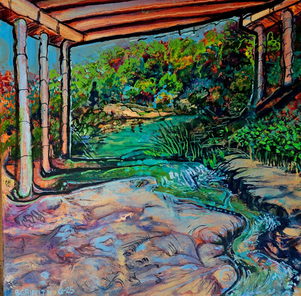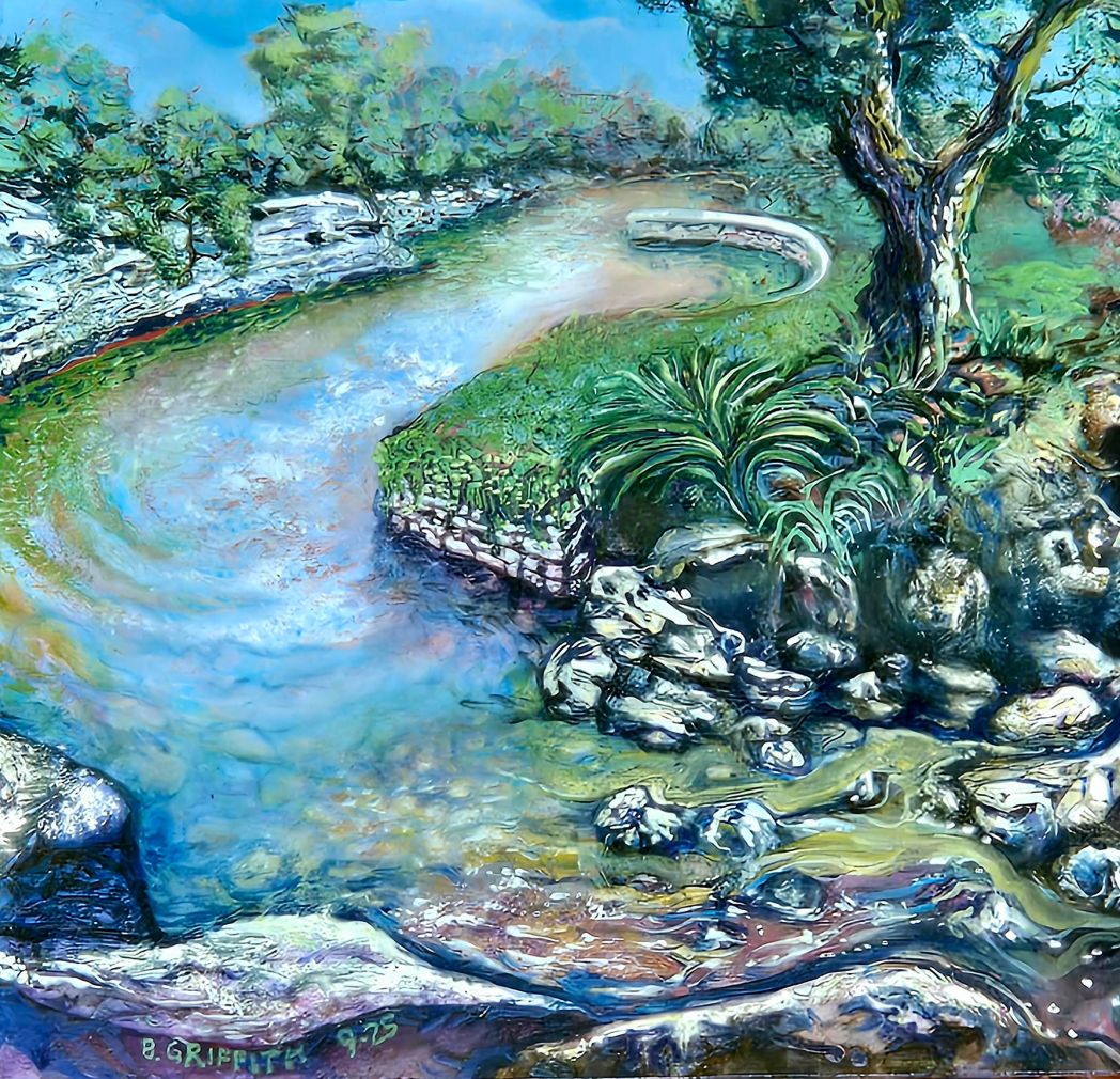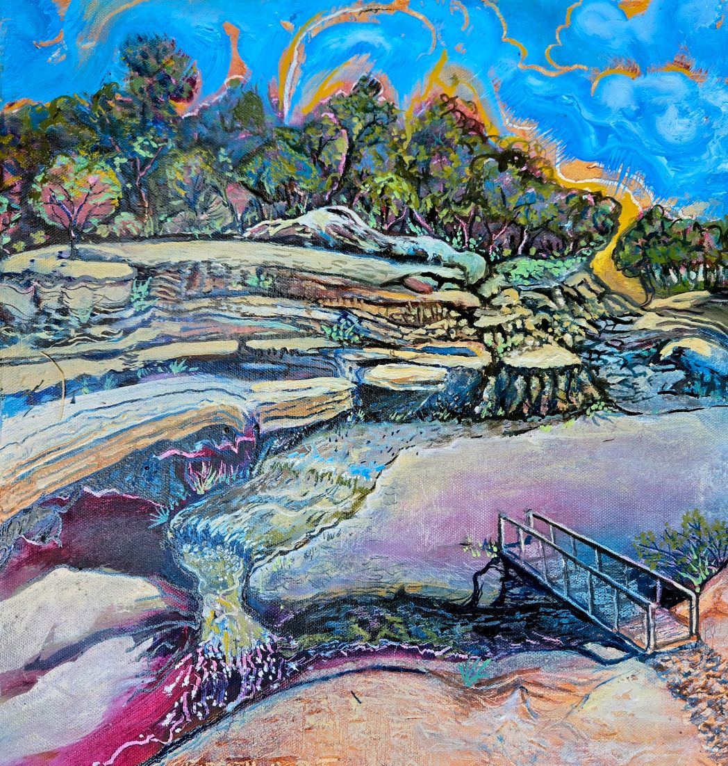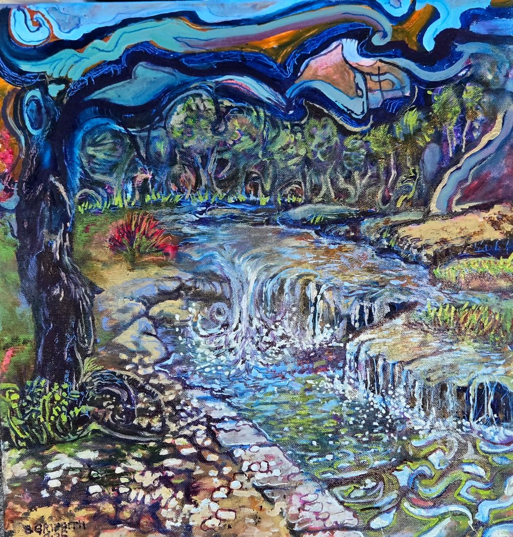 LIZARDS OVER BULL CREEK21-1/2" X 17-1/2"Plein air oil on canvas.$450