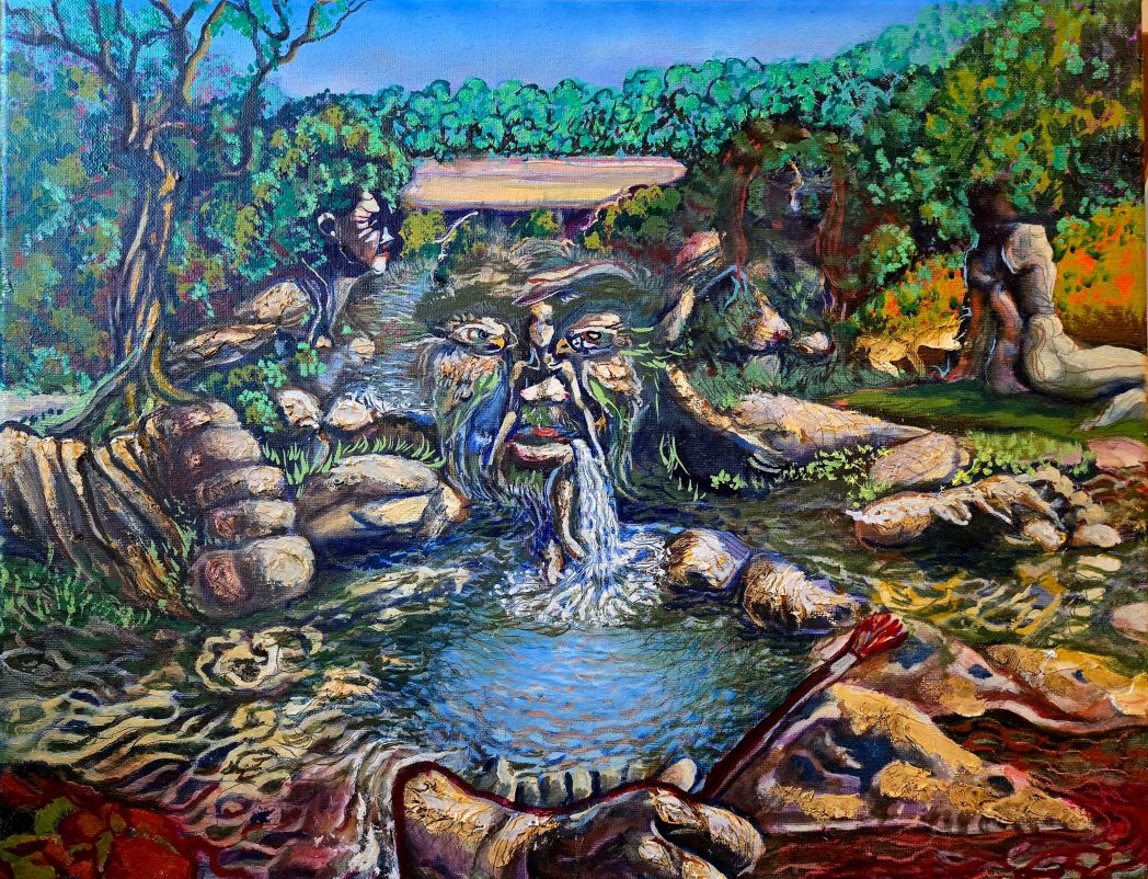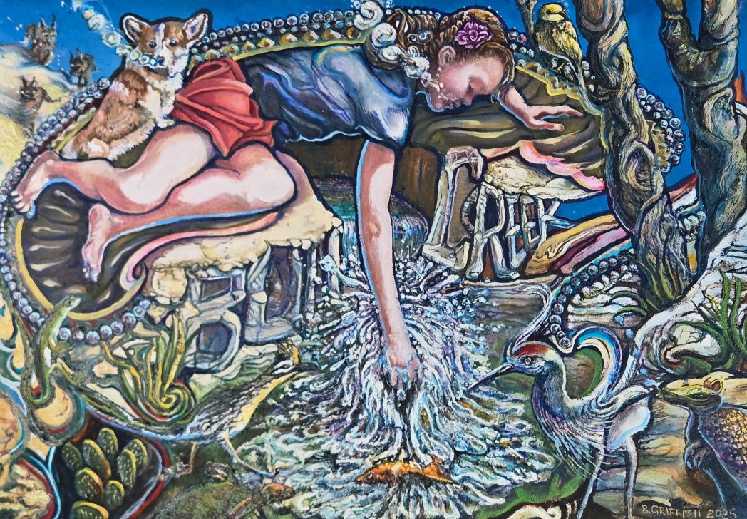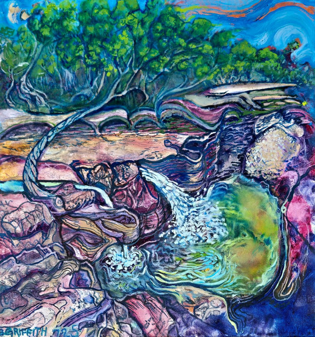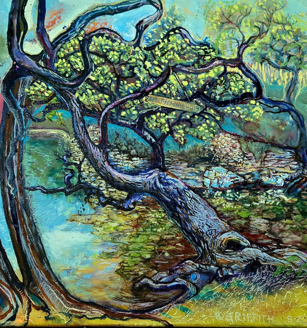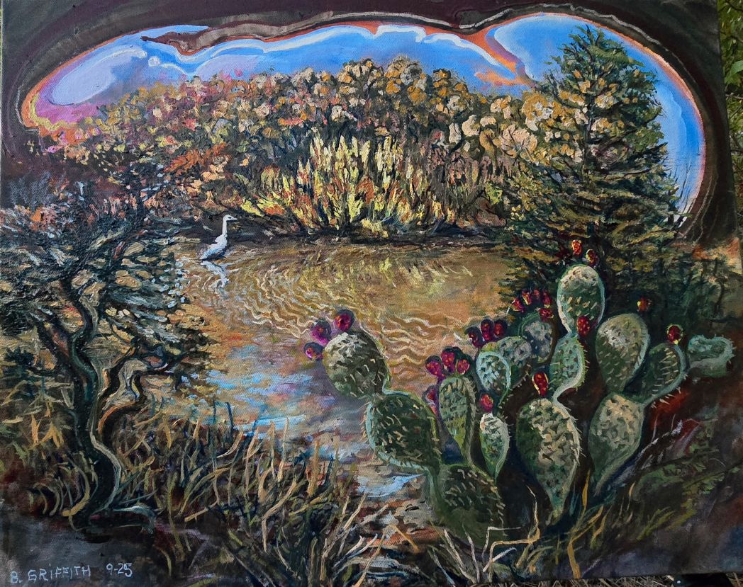 LIZARDS OVER BULL CREEK21-1/2" X 17-1/2"Plein air oil on canvas.$450