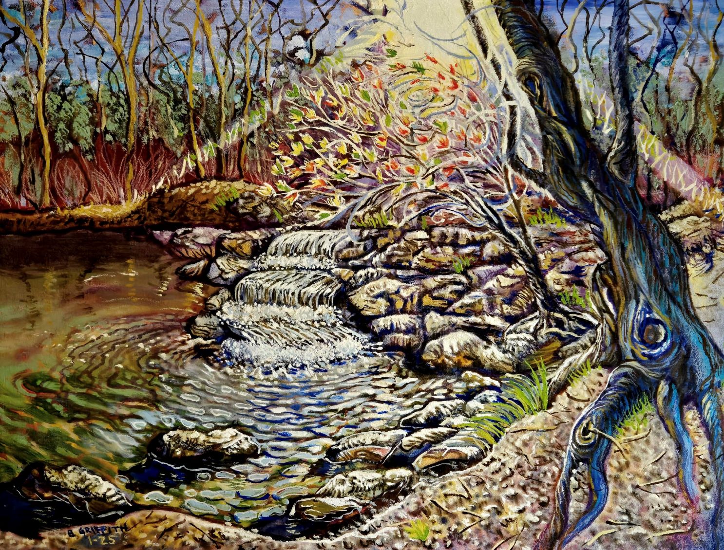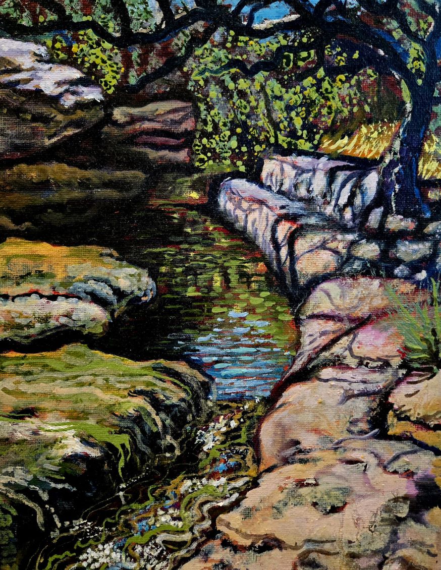 LIZARDS OVER BULL CREEK21-1/2" X 17-1/2"Plein air oil on canvas.$450