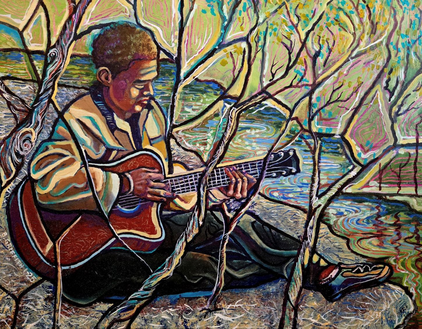 JAM JONES PLAYS ON THE CLIFF24" X 18"Oil on canvas.$900