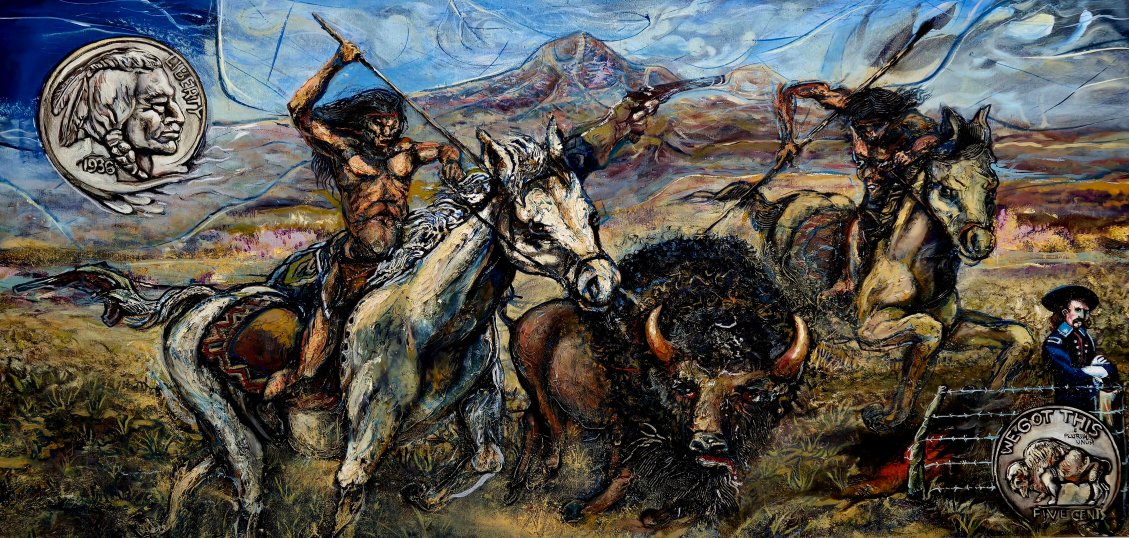 WE GOT THIS! [BUFFALO HUNT]48" X 24"Oil and mixed media on canvas.$2,500