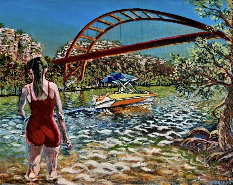 UNDER PENNYBACKER BRIDGE20" X 16"Plein air oil on canvas.$425